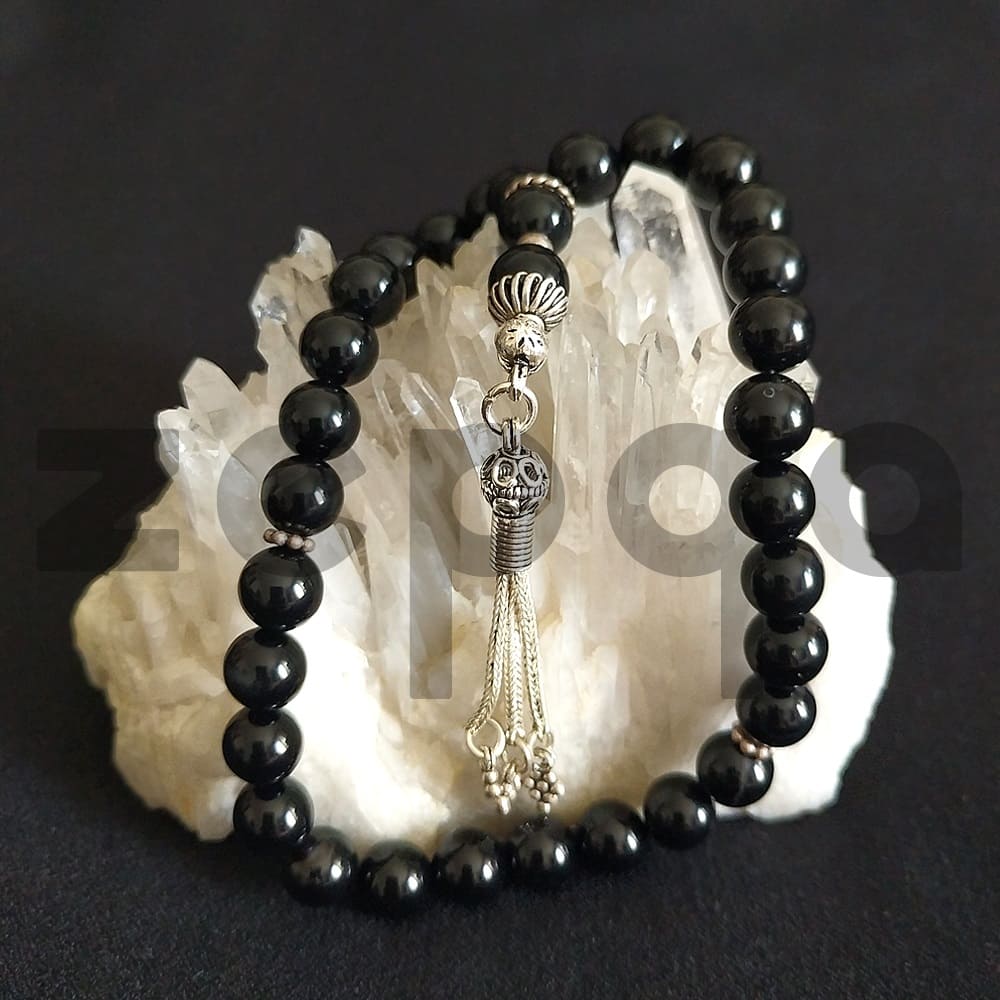 Gümüş Püsküllü Oniks Taş Tesbih 8mm
