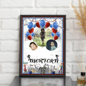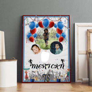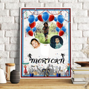 Kırmızı Beyaz Lacivert Renk Temalı Dijital Doğum günü Afişi