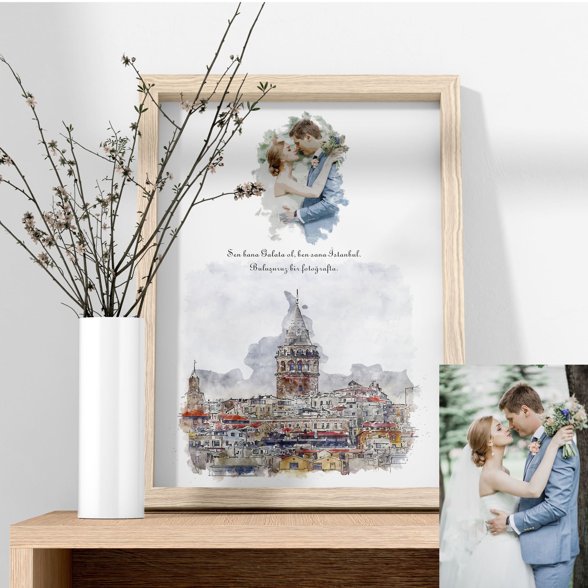 Galata Temalı Çiftlere Özel Foto Kolaj Dijital İndirilebilir Tasarım
