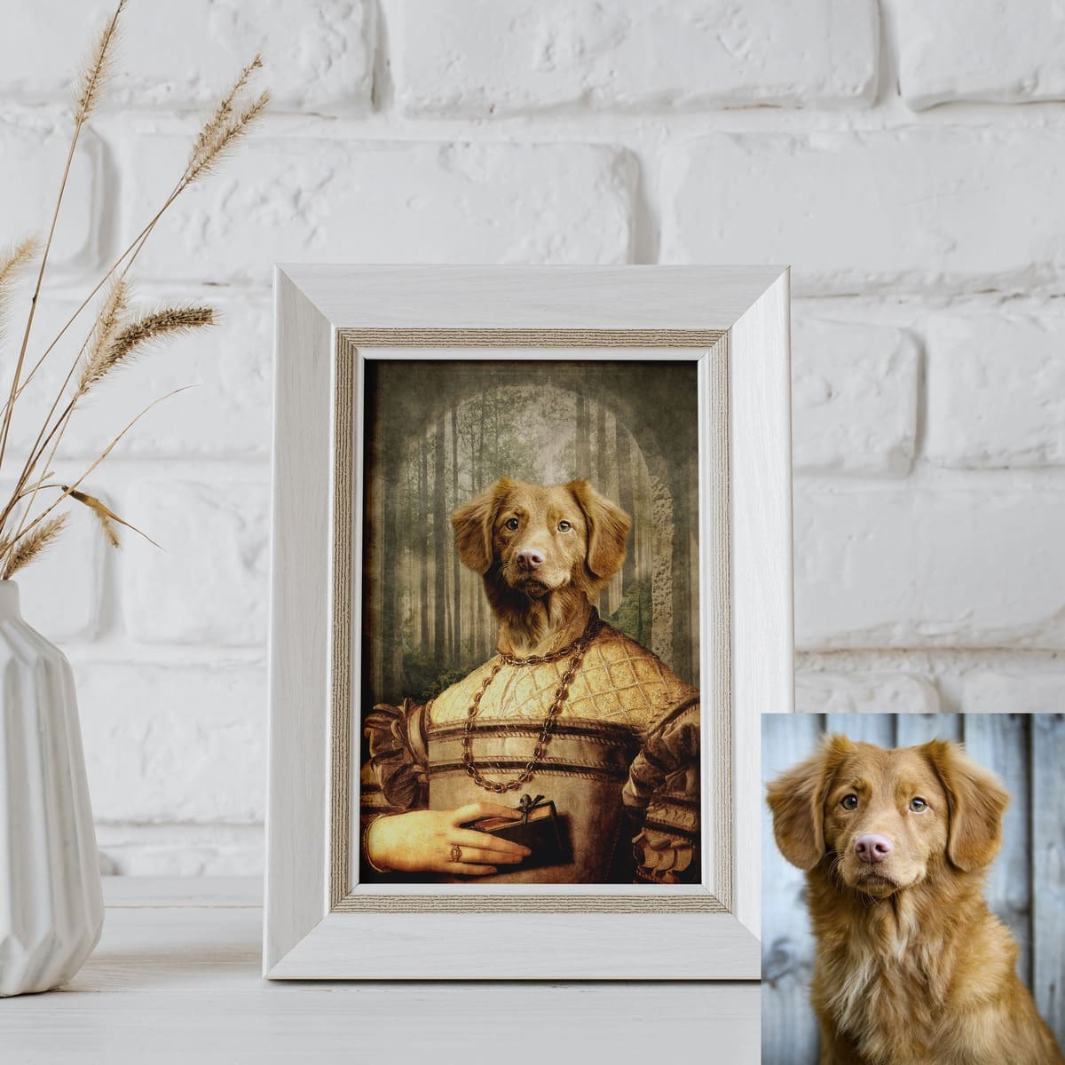 Vintage Orta Çağ Temalı Evcil Hayvan Dijital Portre