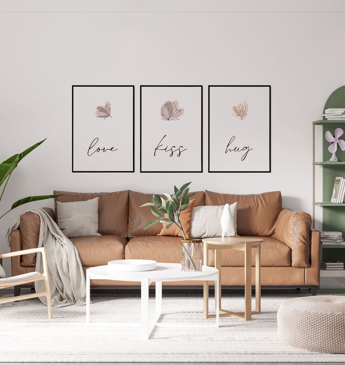 Love Kiss Hug Dijital 3lü Duvar Pano Seti
